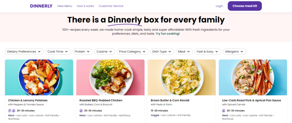 Meal affordability is a cornerstone of our business. We create scratch-made lunches for hard-working men and women, so partnering with Dinnerly was a no-brainer. 100+ recipes every week, with fresh ingredients for your preferences, diets, and taste. All for the best price you’ll find anywhere
